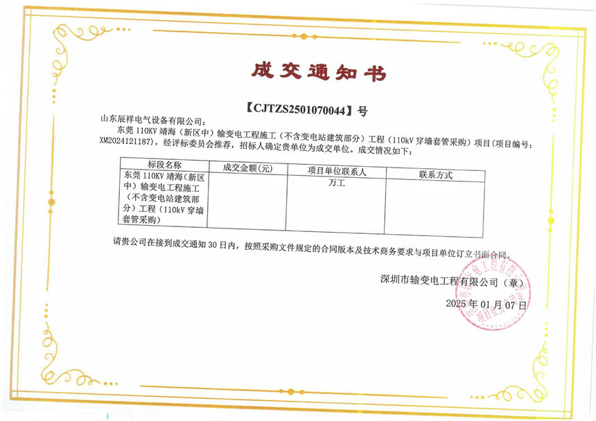 2025.01.03 交流穿墻套管中標通知書